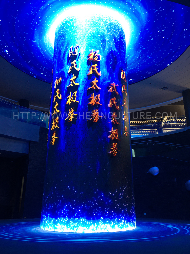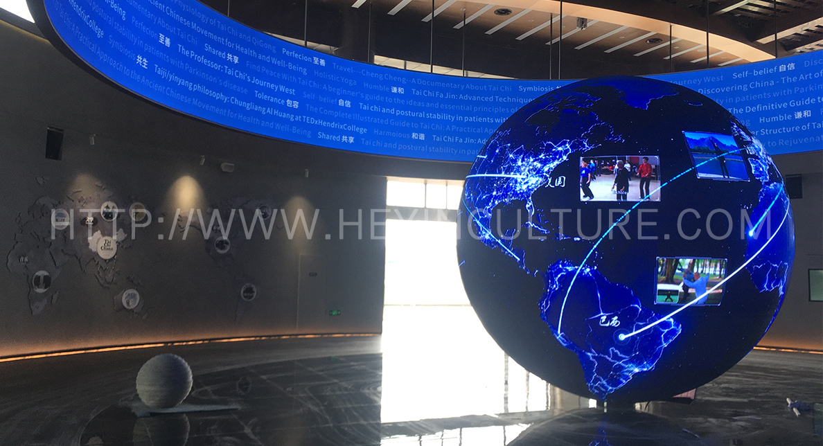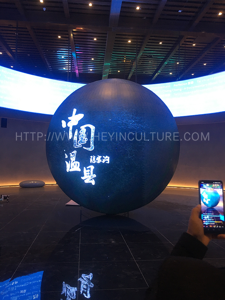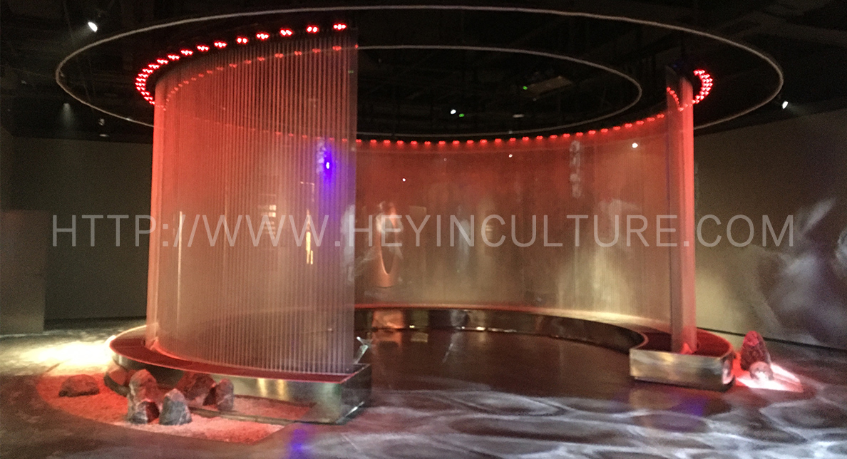 運用水幕投影打造一個剛?cè)岵奶珮O意境空間。游客來到空間中央,沉穩(wěn)悠遠(yuǎn)的聲音便開始念誦《太極拳論》經(jīng)文。對應(yīng)著經(jīng)文內(nèi) 容,水幕上的人影身姿綽約,表演陳氏太極拳小架。游客可以邊看邊學(xué)。演示完畢后,畫面呈現(xiàn)的圖案玄妙莫測,伴著余音繞梁,引導(dǎo)游客慢慢 品味太極意境,感受內(nèi)心的寧靜與舒適。