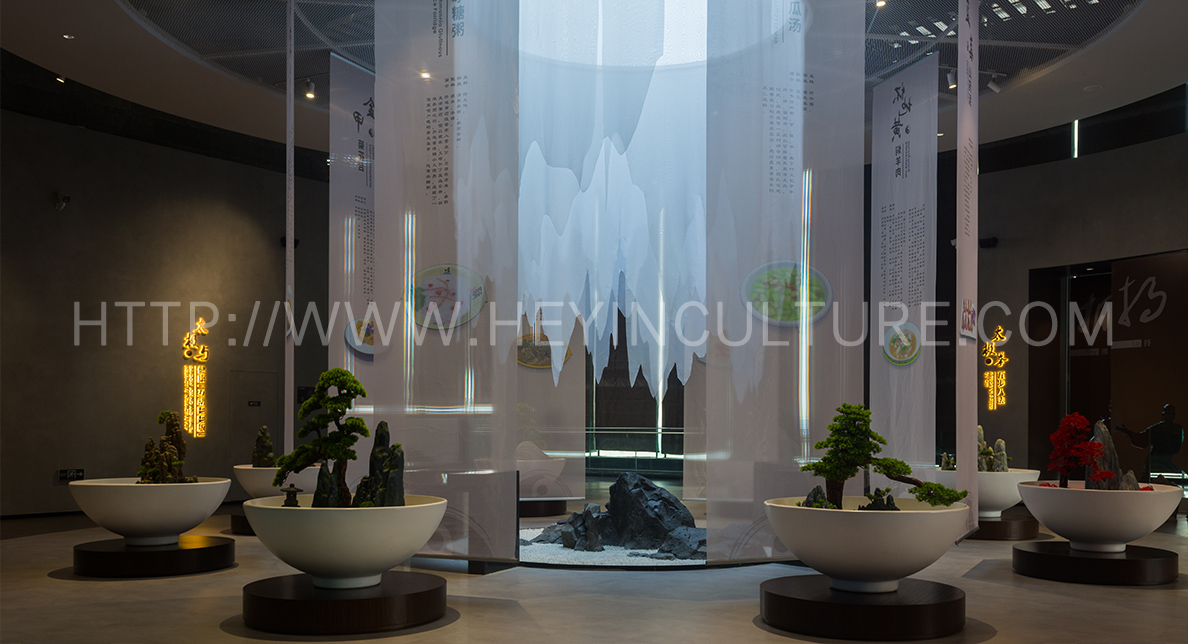 展示四大懷藥與藥膳美食的主題展區(qū)。通過設(shè)計山水藥膳模型,將含有太極意蘊的中國式山水置入碗中,并將四大懷藥內(nèi)置與山水 之中,呈現(xiàn)碗里有山水、山水中有四大懷藥的碗中美景。同時配合互動媒體設(shè)備,在科普四大懷藥歷史、性狀、營養(yǎng)價值、醫(yī)療價值的同時,展 示焦作地區(qū)特有的四大懷藥藥膳食譜,分享健康飲食美學(xué)。