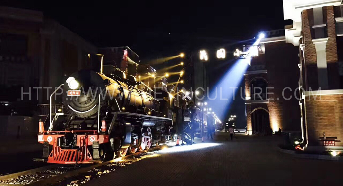 伴著陣陣粗獷悠長(zhǎng)的汽笛聲,氣勢(shì)磅礴的蒸汽火車蜿蜒而來,小鎮(zhèn)最令人眼前一亮的就是長(zhǎng)長(zhǎng)的鐵軌上的蒸汽火車頭,這個(gè)火車頭可是有故事的,1935年,容縣人廖百芳修建了廣西第一條鐵路,以及他輾轉(zhuǎn)從德國(guó)購(gòu)買回來的火車頭,民國(guó)小鎮(zhèn)的火車頭就是再現(xiàn)了廣西鐵路這段百年歷史。