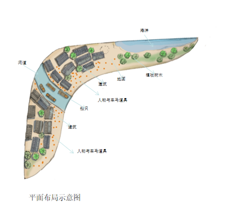 ▲ 嶺南水鄉(xiāng)、一口通關(guān)、商貿(mào)景象微縮藝術(shù)場(chǎng)景區(qū)域(一)